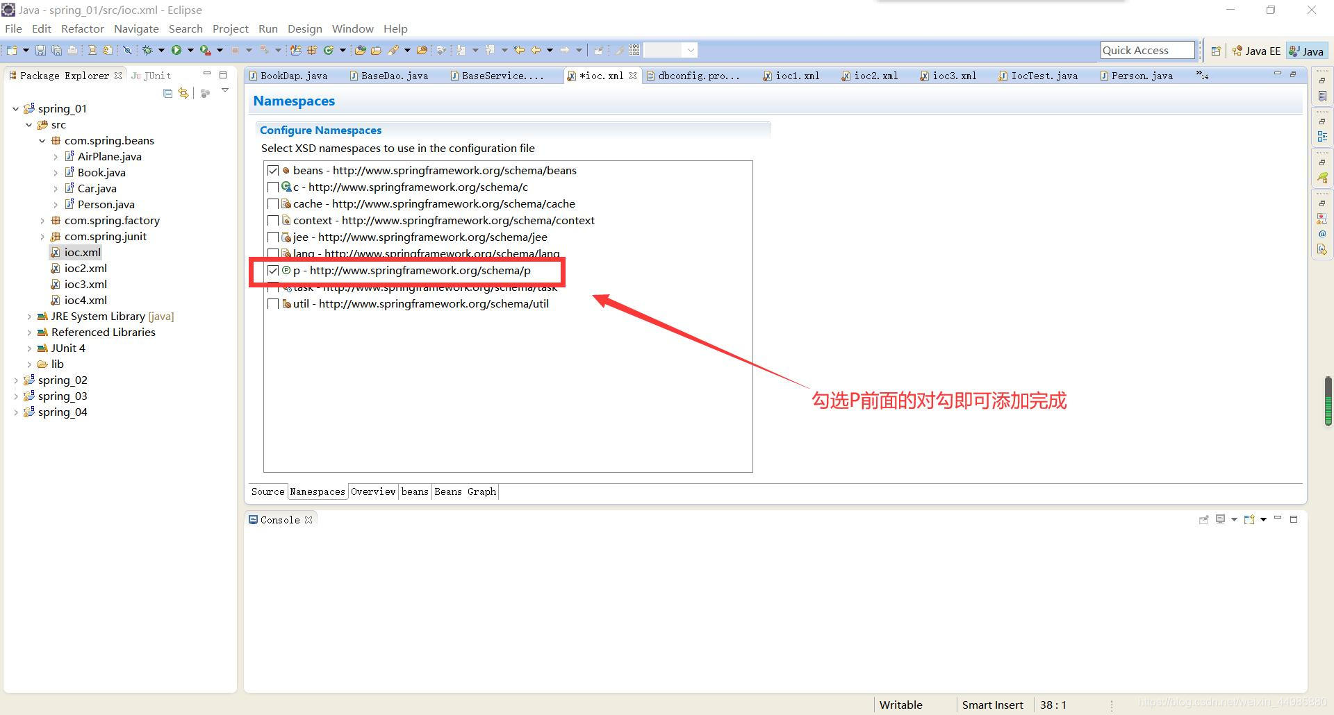 首先我们应该在xml文件中加入P名称空间的使用插件。