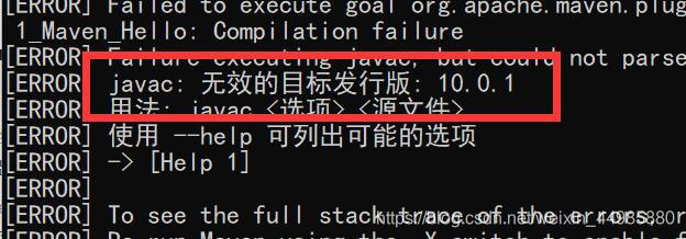 [ERROR] javac: 无效的目标发行版: 10.0.1