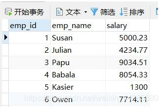 例:将emp_id=5的记录的salary字段更新为1300.00
