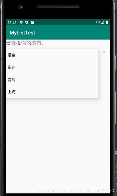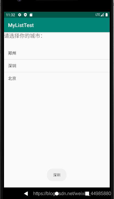 <?xml version="1.0" encoding="utf-8"?> <androidx.constraintlayout.widget.ConstraintLayout xmlns:android="http://schemas.android.com/apk/res/android" xmlns:app="http://schemas.android.com/apk/res-auto" xmlns:tools="http://schemas.android.com/tools" android:layout_width="match_parent" android:layout_height="match_parent" tools:context=".MainActivity"> <TextView android:id="@+id/text1" android:layout_width="wrap_content" android:layout_height="wrap_content" android:text="请选择你的城市:" android:textSize="20dp" ></TextView> <ListView android:id="@+id/lv1" android:layout_width="match_parent" android:layout_height="wrap_content" app:layout_constraintTop_toBottomOf="@id/text1" android:layout_marginTop="30dp" ></ListView> </androidx.constraintlayout.widget.ConstraintLayout>