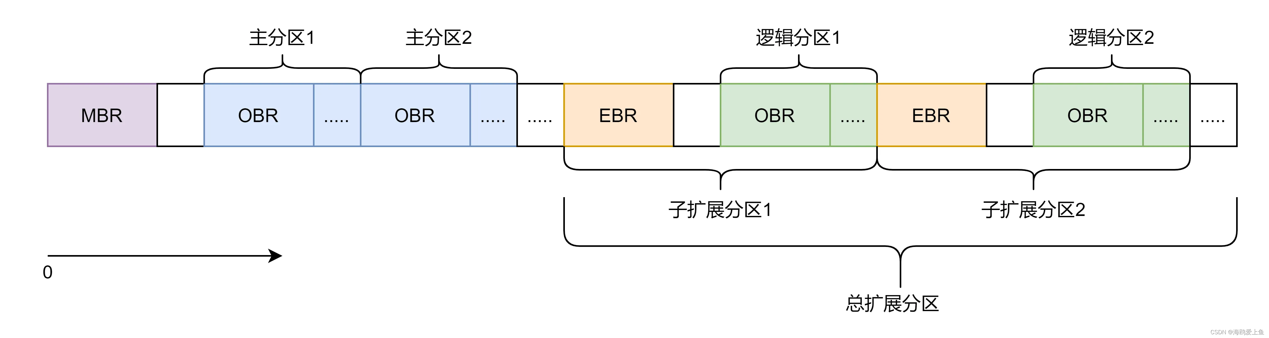 - MBR分区方案在BIOS固件的系统上最多支持4个主分区或3个主分区加一个扩展分区(primary partition),通过扩展分区(extended partiton)和逻辑分区(logical partition),最多创建 15 个分区。