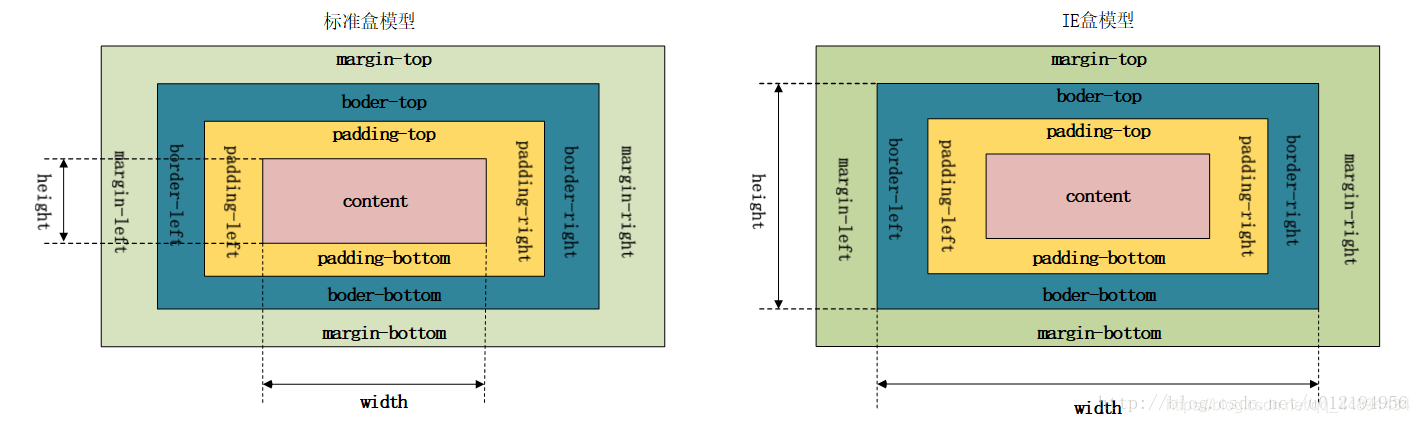 - 两种盒模型的区别:标准盒模型内容大小就是content大小、而IE盒模型内容大小则是content+padding+border总的大小。