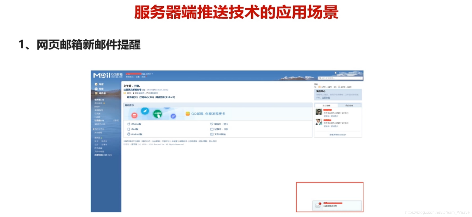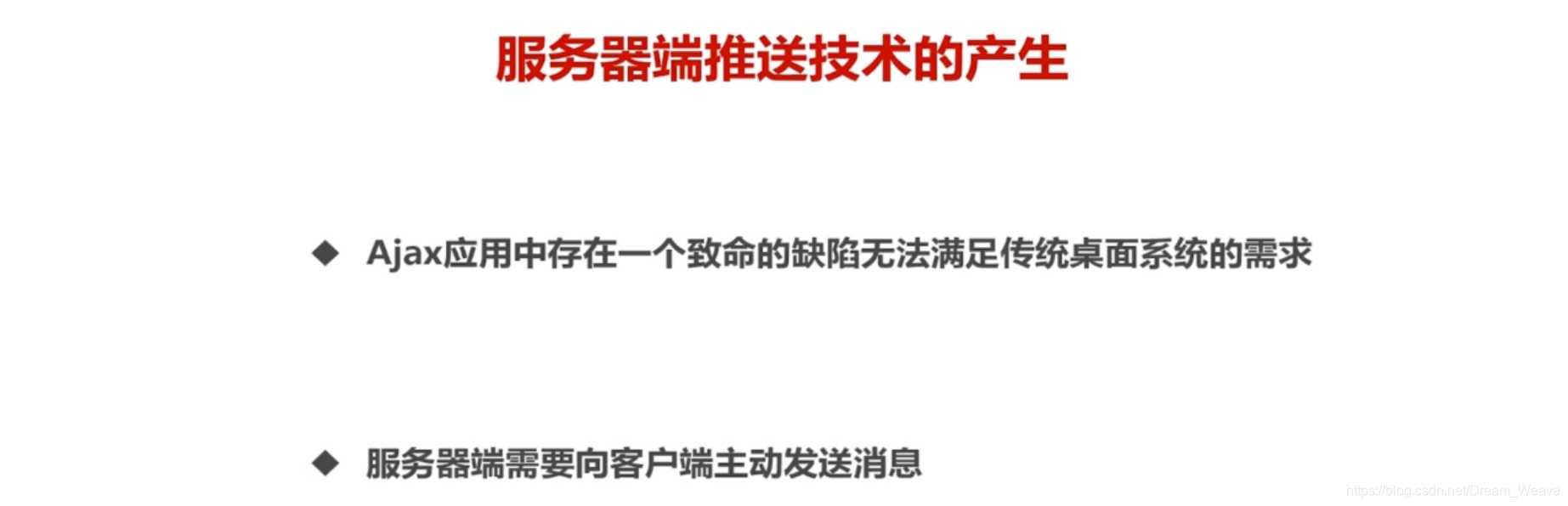- Ajax轮询:可行的一种方式,但是由于得通过js定时函数去请求数据,定时时间长短不好控制,服务压力大,但比定时刷新好很多,因为异步请求,不会导致不需要的地方也刷新。