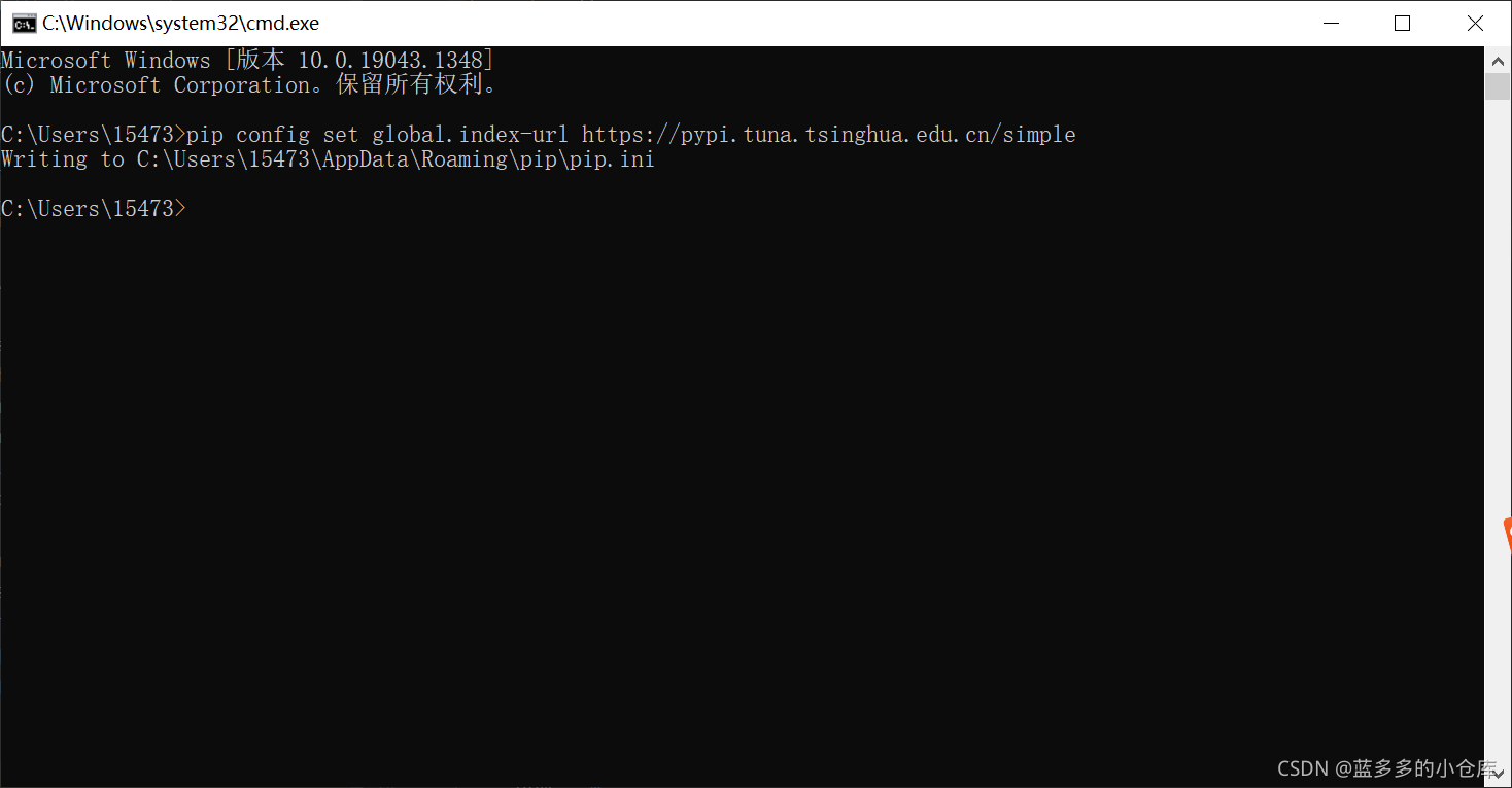Step one:WIN+R---->cmd,输入如下命令(这里选择的是清华源):