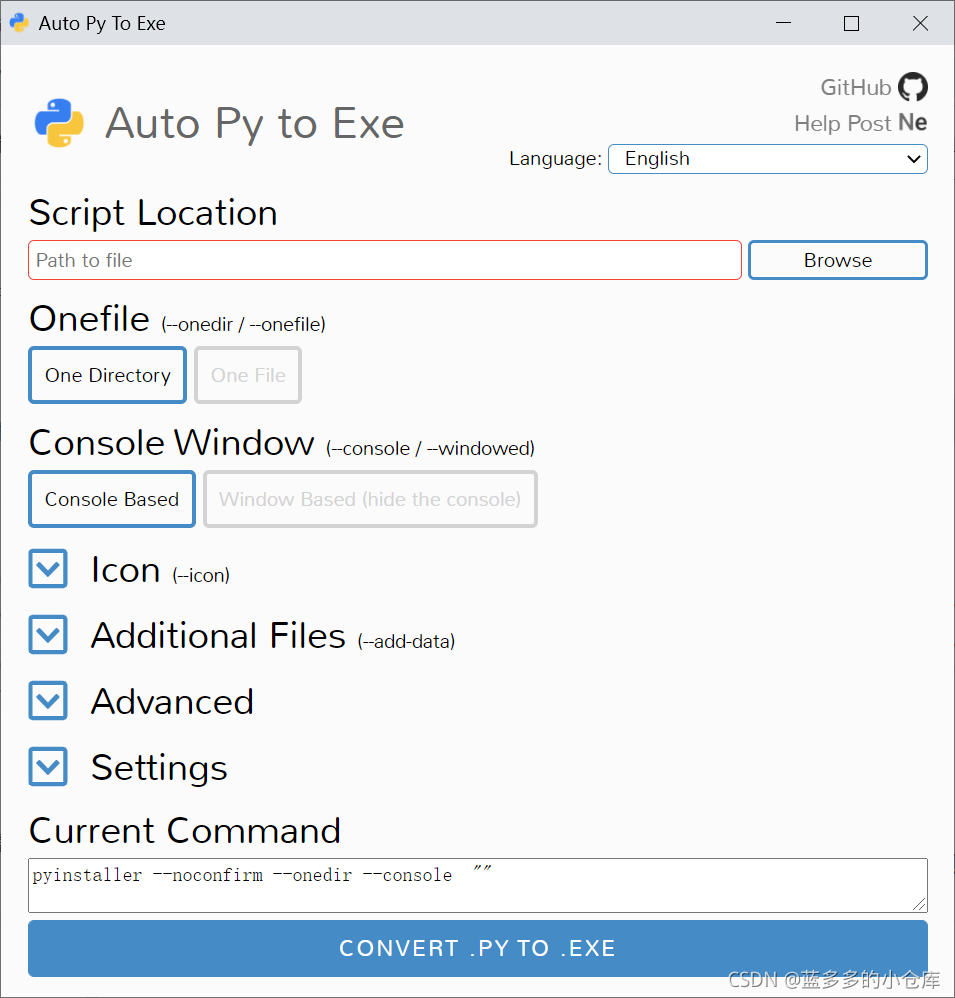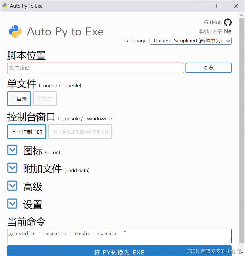 使用Pyinstaller将Python程序打包成exe_蓝多多的小仓库-CSDN博客