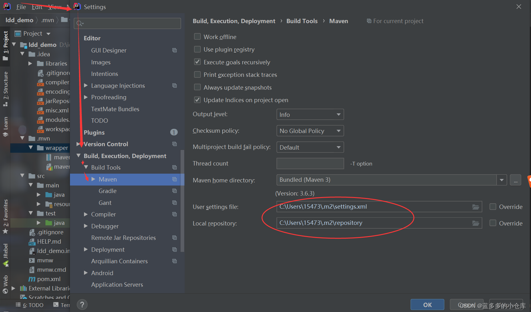 3>File------>settings检查Maven的配置,对应自己本地用的即可,若修改的话请注意重新刷新下maven载入好依赖