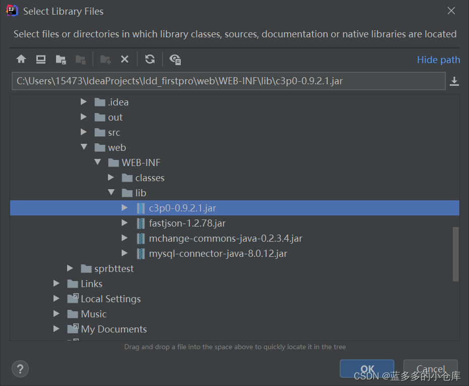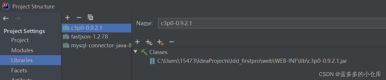 1>导入:c3p0-0.9.2.1.jar,mchange-commons-java-0.2.3.4.jar(关注左侧公众号:蓝多多的小仓库 回复“c3p0”即可获取资源)