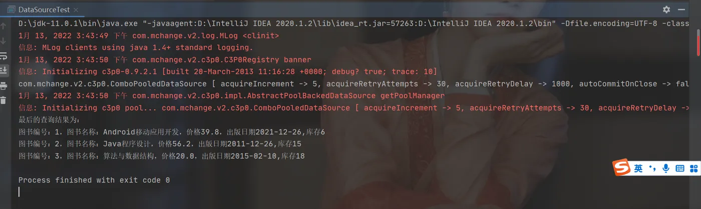 /** * @author 蓝多多的小仓库 * @title: DataSourceTest * @projectName ldd_firstpro * @description: ldd_annotation * @date 2022/1/13 15:24 */ import java.math.BigDecimal; import java.sql.Connection; import java.sql.Date; import java.sql.ResultSet; import java.sql.Statement; public class DataSourceTest { public void c3p0DataSourceTest() { Connection conn = null; Statement st = null; ResultSet rs = null; try { //获取数据库连接 conn = C3P0_Utils.getConnection(); String sql = "select * from bookinfo"; // 查询数据的sql语句 st = (Statement) conn.createStatement(); //创建用于执行静态sql语句的Statement对象,st属局部变量 rs = st.executeQuery(sql); //执行sql查询语句,返回查询数据的结果集 System.out.println("最后的查询结果为:"); while(rs.next()){ //遍历结果集,取出数据 int book_id = rs.getInt("book_id"); String book_name = rs.getString("book_name"); BigDecimal price = rs.getBigDecimal("price"); Date public_date = rs.getDate("public_date"); String store = rs.getString("store"); //输出数据 System.out.print("图书编号:"+book_id); System.out.print(",图书名称:"+book_name); System.out.print(",价格"+price); System.out.print(",出版日期"+public_date); System.out.print(",库存"+store); System.out.println(); } } catch (Exception e) { e.printStackTrace(); } finally { //释放资源 C3P0_Utils.release(conn, st, rs); } } public static void main(String[] args) { new DataSourceTest().c3p0DataSourceTest(); } }