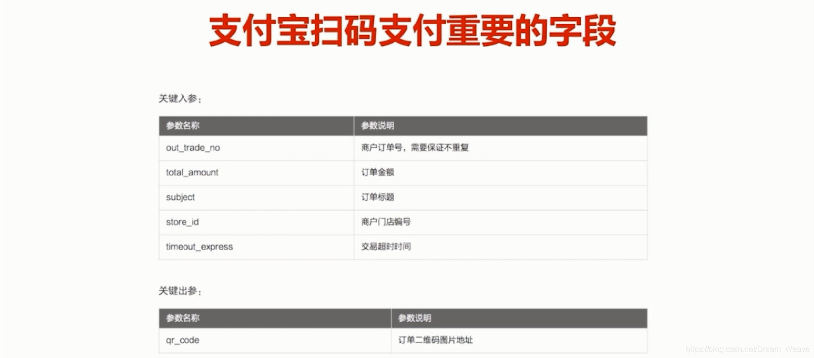 - 扫码支付接入指引:https://doc.open.alipay.com/docs/doc.htm?spm=a219a.7629140.0.0.Ia6Wqy&treeId=193&articleId=106078&docType=1