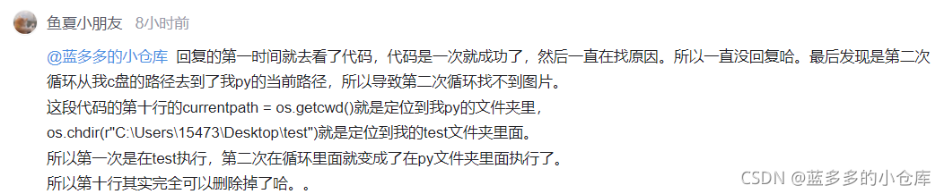 4、os.listdir的文件名是相对路径(os.listdir只返回文件名);它将在当前工作目录中搜索,该目录是os.getcwd()(不会因为变量命名更改而进行更改)
