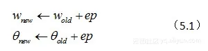 现在,我们把ep的值带入公式(5.1)所示的规则中,更新网络的权值和阈值,即: