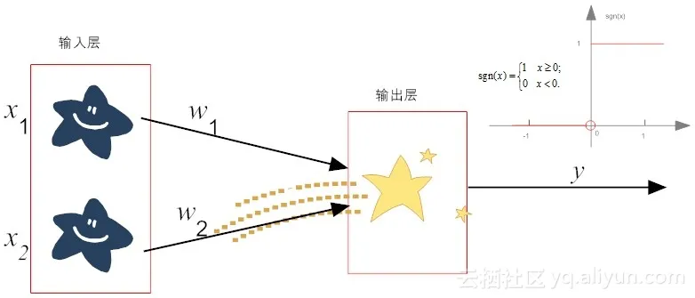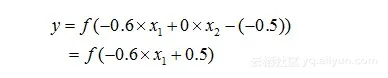 将这个输出值带入如图5-2-b所示的阶跃函数中,可得y=0。