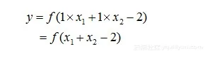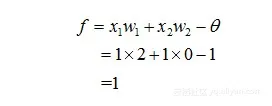 (1)“与(x1∧x2)”:当权值w1=w2=1,阈值θ=2时,有: