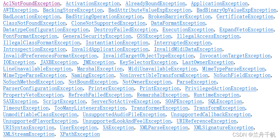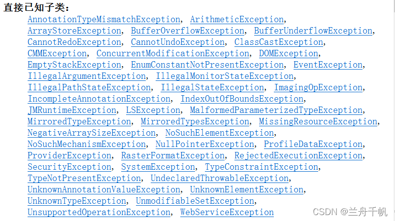 当然Exception还是有好多子类的javaapi给出了直接子类