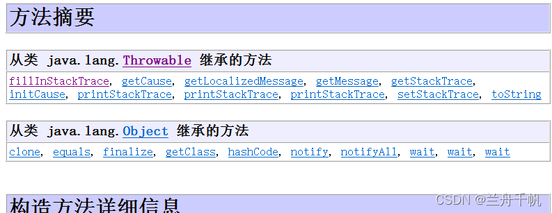 基本上Exception的所有一般方法都是从Throwable和Object继承过来的。