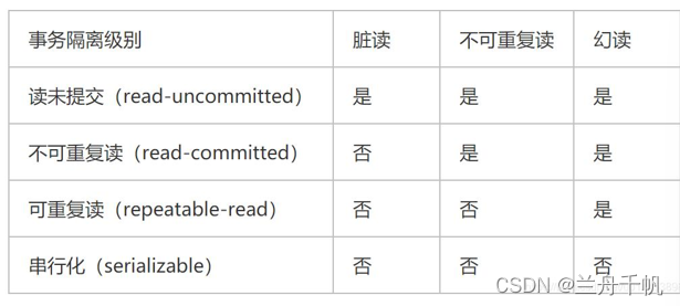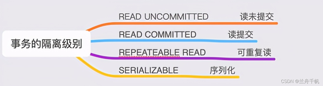 隔离级别主要体现在数据的读写操作的权限上,一共分为四个隔离级别如下图。