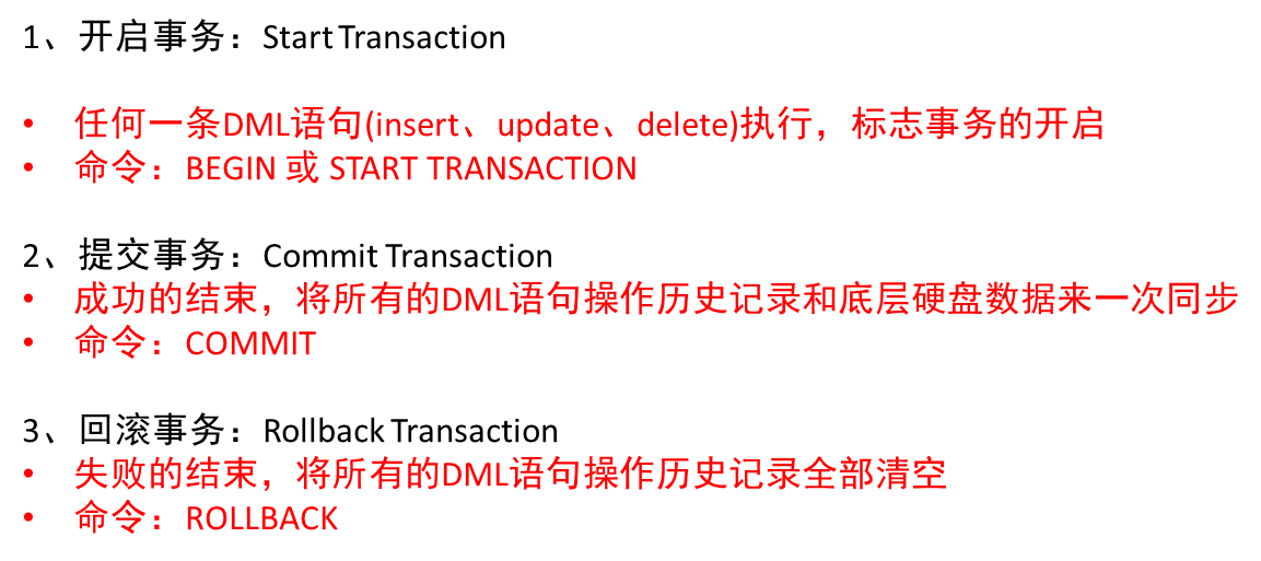 begin; update account set money = money-200 where id =1; update set money = money +200 where id =3; -- 执行完之后提交事务 commit ;