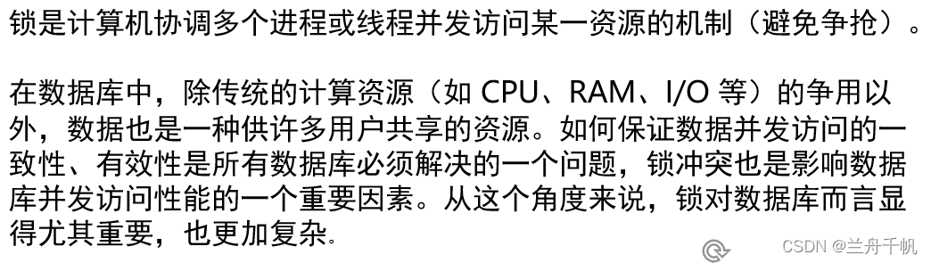 共享锁(S):又称为读锁,简称S锁,共享锁就是多个事务对于同一数据可以共享一把锁,都能访问到数据,但是只能读不能修改。