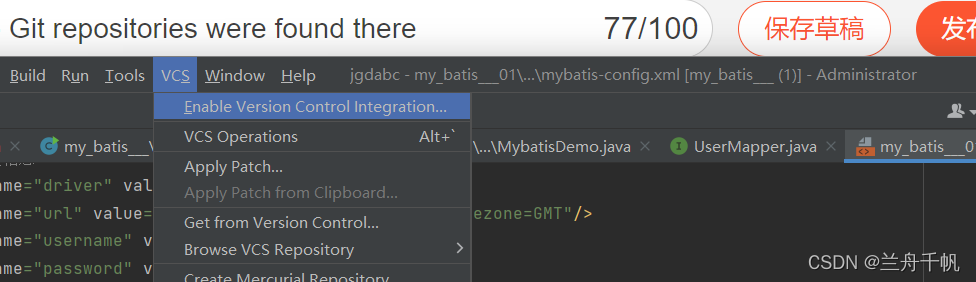 对于小白初次使用idea里面搞git常常会出现的问题。你看比如这样。于是我去搜了。