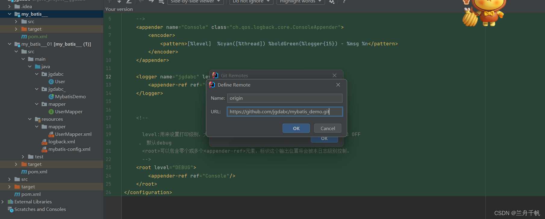 上图这个我添加的本身就是一个git项目,所以没有出现问题,但是如果本身项目还没有关联远程仓库的话,这样搞是会出现问题。