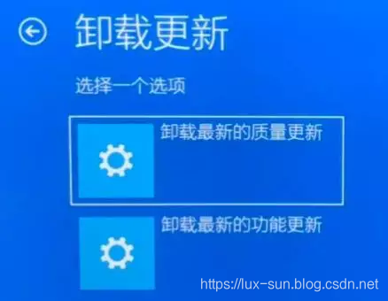 强制关机并重新开机三次,进入WinRE(Windows Recovery Environment系统恢复环境),依次选择【疑难解答】【高级选项】【卸载更新】【卸载最新的质量更新】。