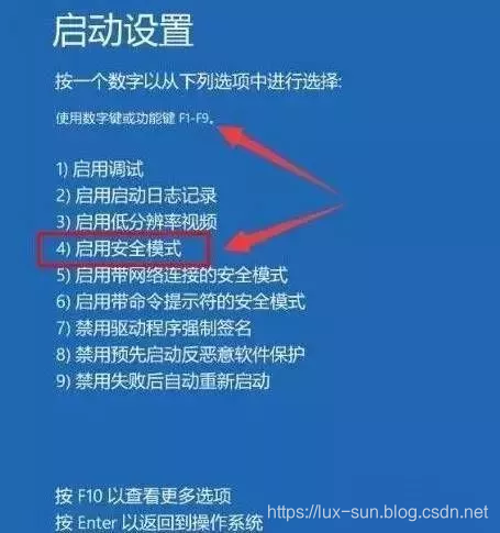 强制关机并重新开机三次,进入WinRE,依次选择【疑难解答】【高级选项】【查看更多恢复选项】【启动设置】【重启】按【F4】重启后进入安全模式(系统版本不同路径和名称可能有所差异)。
