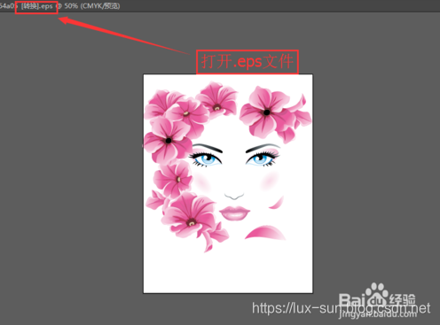 1、首先使用软件 AI 打开 .eps 文件,打开方法:文件—打开,或者使用快捷键 Ctrl + O 打开文件
