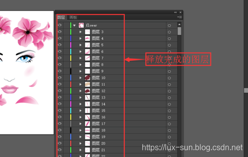 Ps:在用AI释放图层的时候,务必要将所有的图层都释放操作一遍。