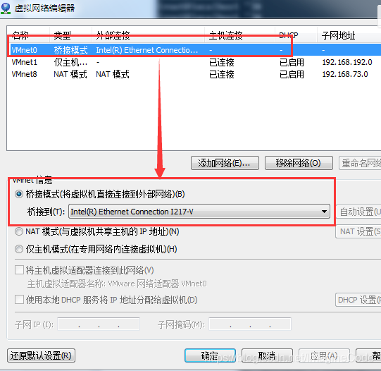 网络配置器,这里开启桥接模式。