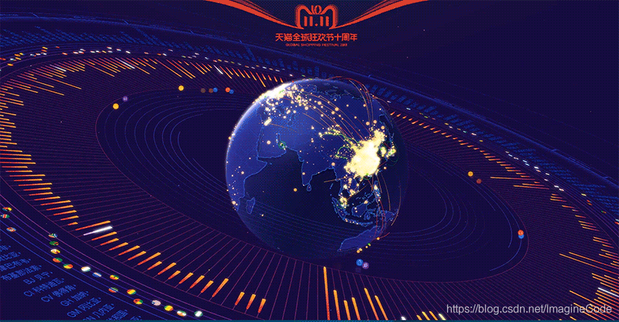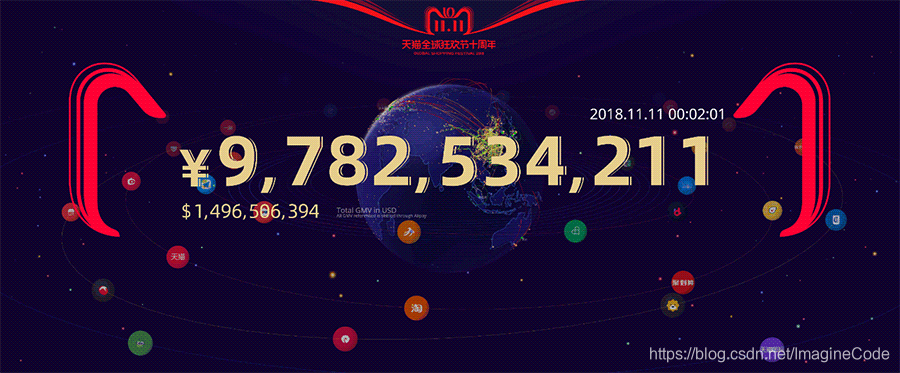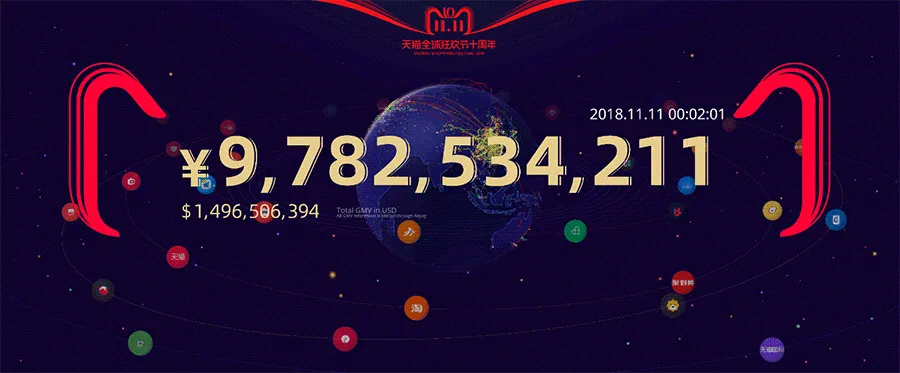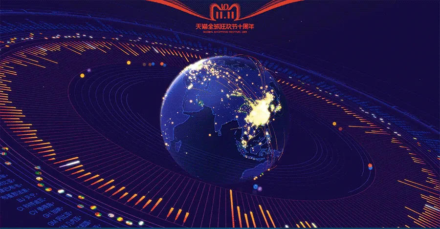 “大面积、炫酷动效、丰富色彩”,大屏易在观感上给人留下震撼印象,便于营造某些独特氛围、打造仪式感。电商双11类大屏利用此特点打造了热烈、狂欢的节日氛围,原本看不见的数据可视化后,便能调动人的情绪、引发人的共鸣,传递企业文化和价值。