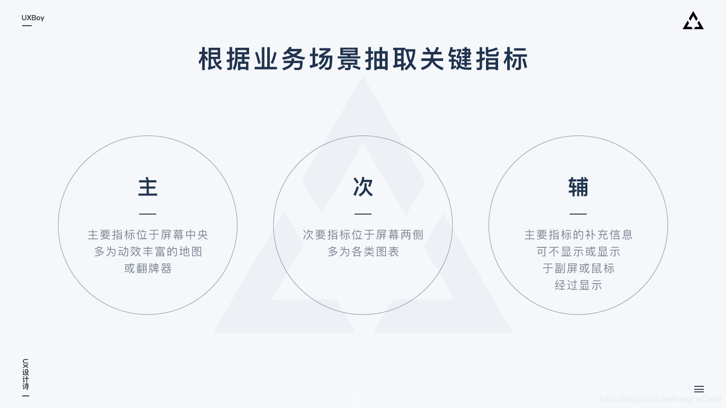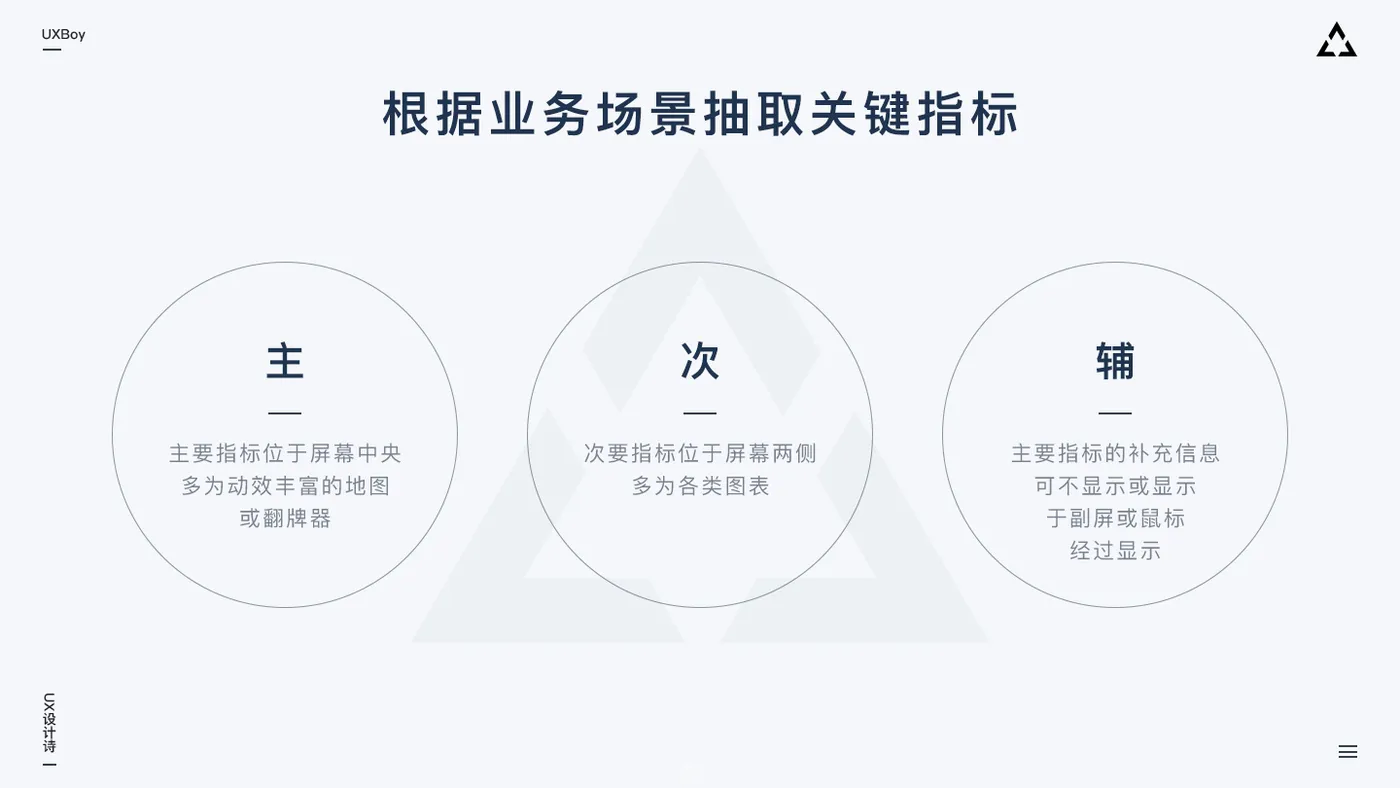 确定关键指标后,根据业务需求拟定各个指标展示的优先级(主、次、辅)。
