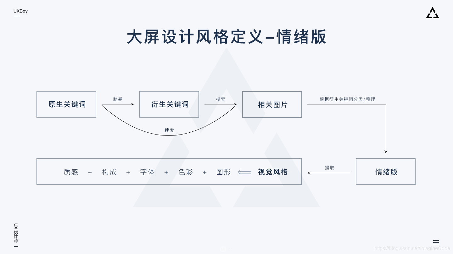 很多小伙伴也许没接触过大屏设计工作,但大多数人都应该有APP或者Web风格定义的经验。我们在定义一款APP或者Web页面设计风格时常用的方法是什么呢?情绪版!