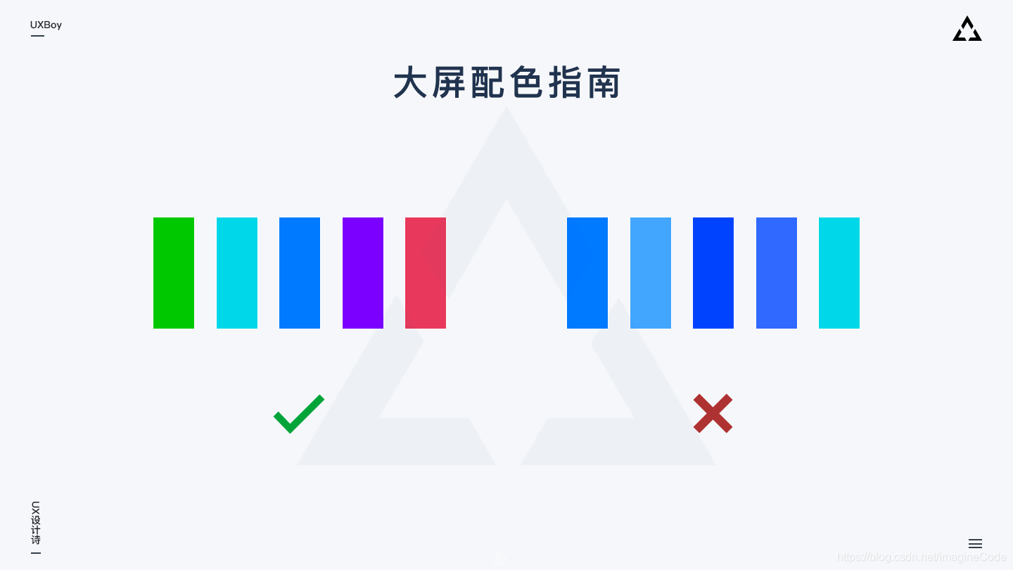 1、色彩明度与饱和度差异显著、对比鲜明, 尽量避免使用邻近色配色