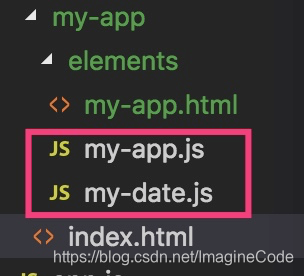 现在的目录结构是这样:在elements目录下新建一个my-app.js和my-date.js。