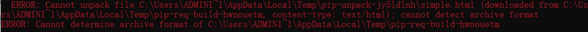 pipinstallmysqlclient==1.3.12-index-urlhttps://pypi.douban.com/simpleERROR: CannotunpackfileC:\Users\songjian\AppData\Local\Temp\pip-unpack-vmrr5ivz\simple.htm (downloadedfromC:\Users\songjian\AppData\Local\Temp\pip-req-build-kxphz3oa, content-type: text/html); cannotdetectarchiveformatERROR: CannotdeterminearchiveformatofC:\Users\songjian\AppData\Local\Temp\pip-req-build-kxphz3oa