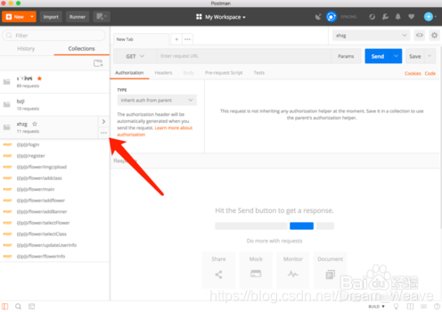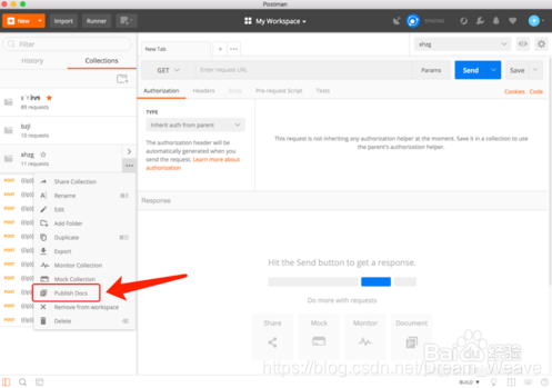 首先打开 Postman 点击要分享的父级木,放在上面有省略好,点之