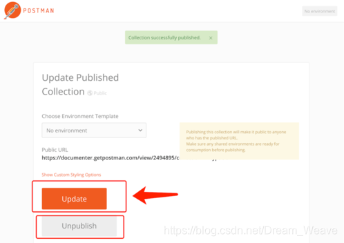 然后会出现该页面,第二次publish docs会直接进入该页面,这里可以更新和取消分享