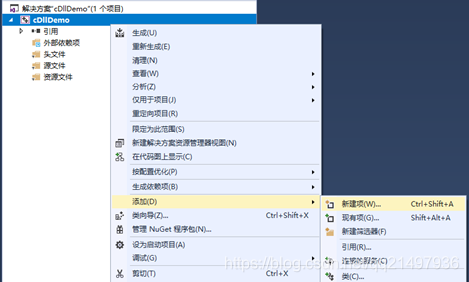 添加头文件(cDllDemo.h)与源文件(cDllDemo.cpp)