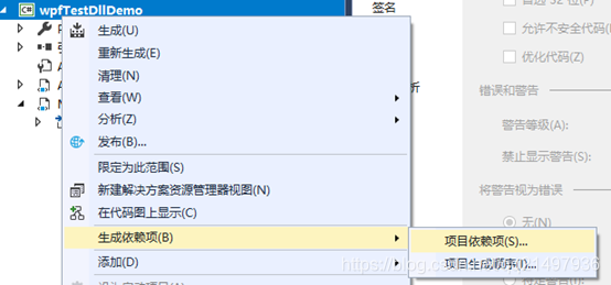 设置依赖项,为了每次运行该测试应用之前,先编译生成对应的dll,方式dll修改未更新,如下图: