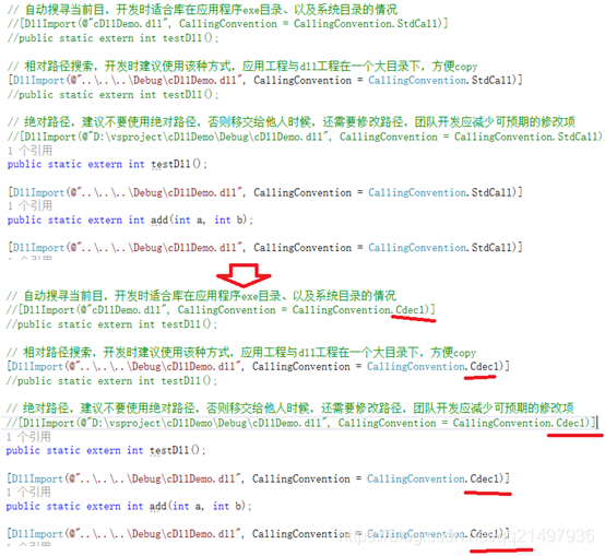 - CallingConvention.StdDecl:__stdcall调用约定相当于16位动态库中经常使用的PASCAL调用约定。在32位的VC++5.0中PASCAL调用约定不再被支持(实际上它已被定义为__stdcall。除了__pascal外,__fortran和__syscall也不被支持),取而代之的是__stdcall调用约定。两者实质上是一致的,即函数的参数自右向左通过栈传递,被调用的函数在返回前清理传送参数的内存栈,但不同的是函数名的修饰部分(关于函数名的修饰部分在后面将详细说明)。_stdcall是Pascal程序的缺省调用方式,通常用于Win32Api中,函数采用从右到左的压栈方式,自己在退出时清空堆栈。VC将函数编译后会在函数名前面加上下划线前缀,在函数名后加上"@"和参数的字节数;