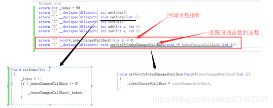 首先,在C库头文件和源文件中定义回调函数全局变量和回调函数,如下图: