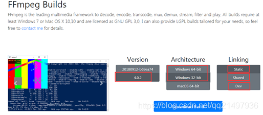 官方下载地址:https://ffmpeg.zeranoe.com/builds/
