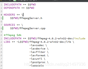 在pro头文件中包含FFmpegServer.pri