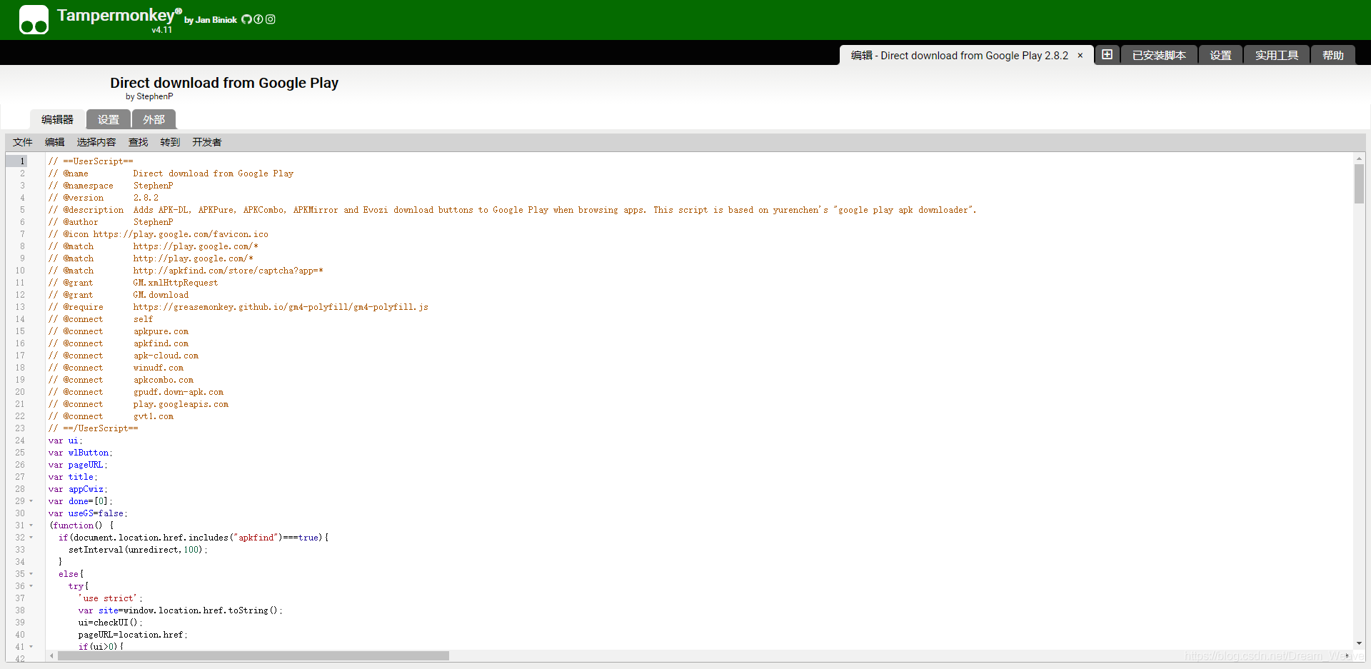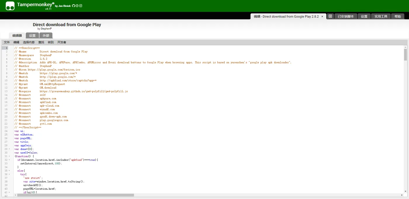 一个油猴脚本:Direct download from Google Play