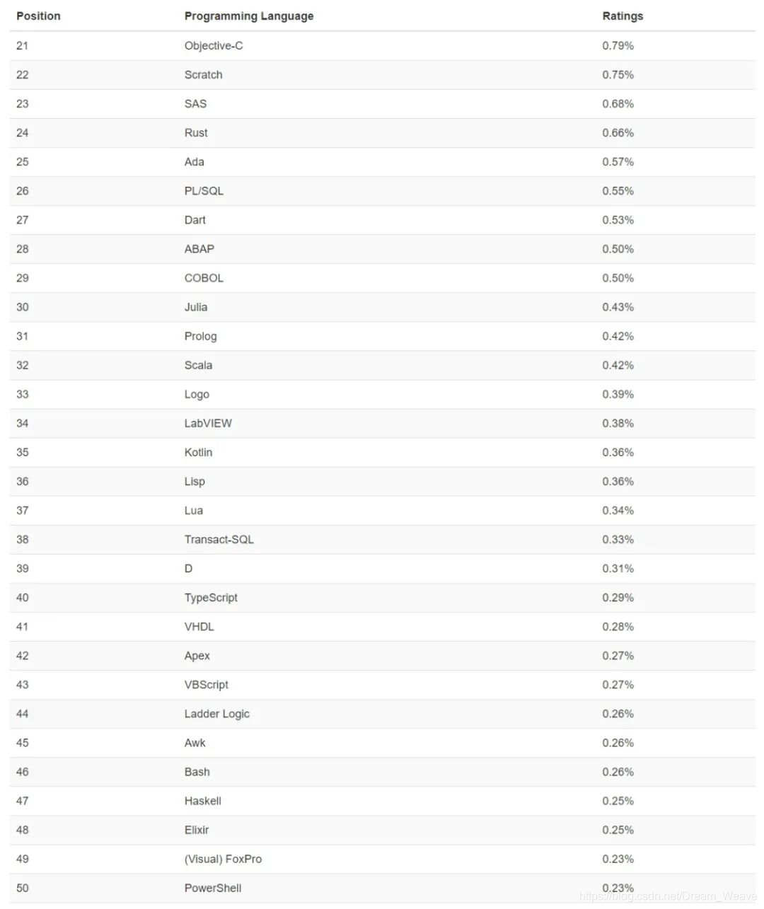 这个排行榜可以用来考察你的编程技能是否与时俱进,也可以在开发新系统时作为一个语言选择依据。