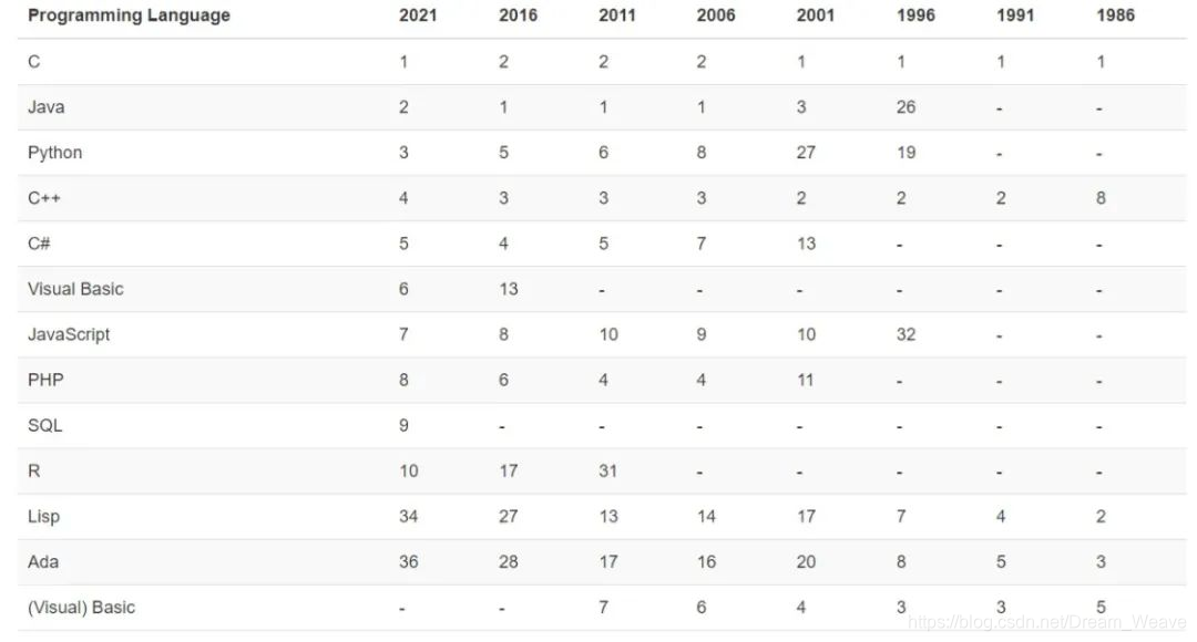 详细榜单信息可参考 TIOBE 官网:https://www.tiobe.com/tiobe-index