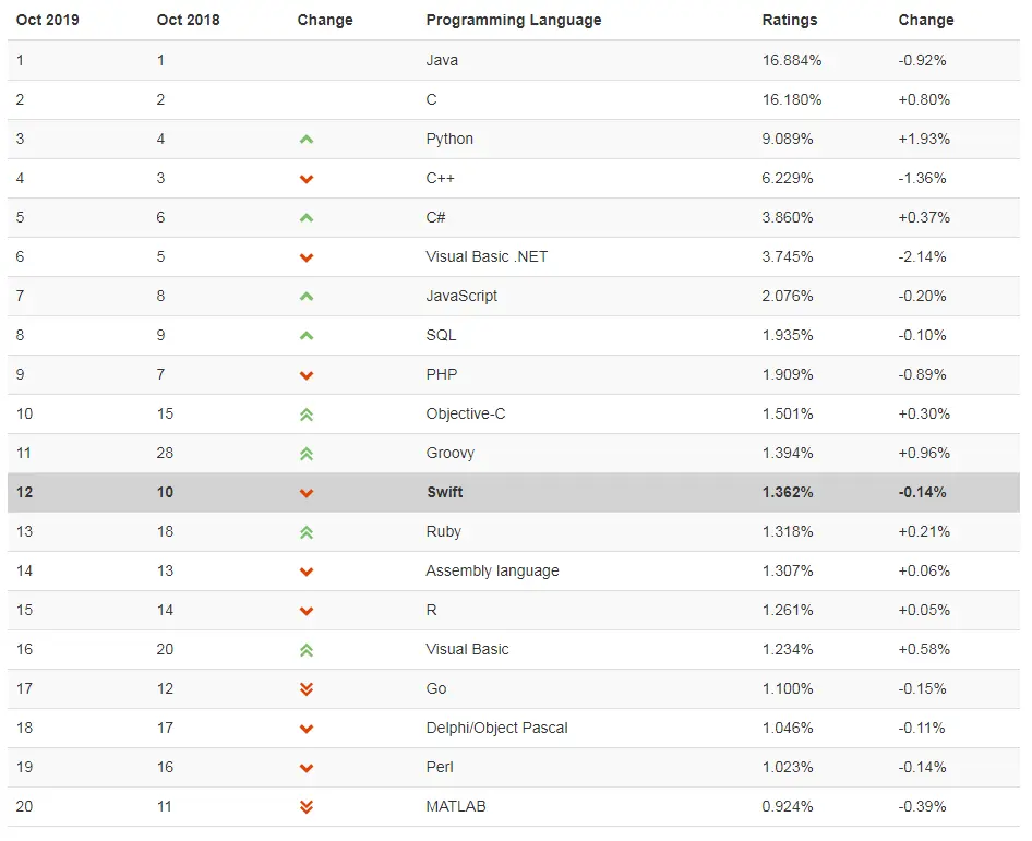 也可以说主要是由以上 25 个网站,每个月的搜索情况来决定当月编程语言的排行榜。