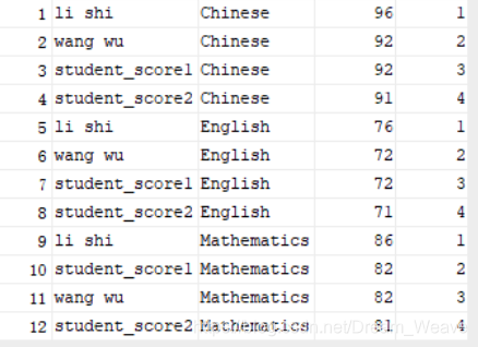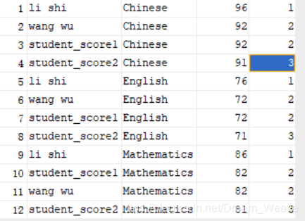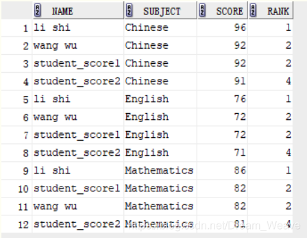 与rank() over的区别是,两名学生的成绩并列以后,下一位同学并不空出所占的名次。