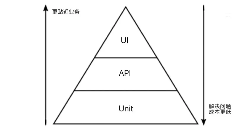 其中 Unit 代表单元测试,API 代表接口测试,UI 代表页面级的系统测试。分层的自动化测试倡导产品的不同层次都需要自动化测试,这个金字塔也正表示不同层次需要投入的精力和工作量。对于测试金字塔,越靠下越容易自动化,越靠下成本越低,越靠下效率越高。