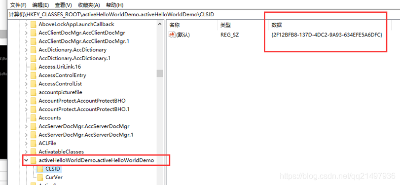 查看一下,打开注册表并搜索一下,确认clsid,如下图: